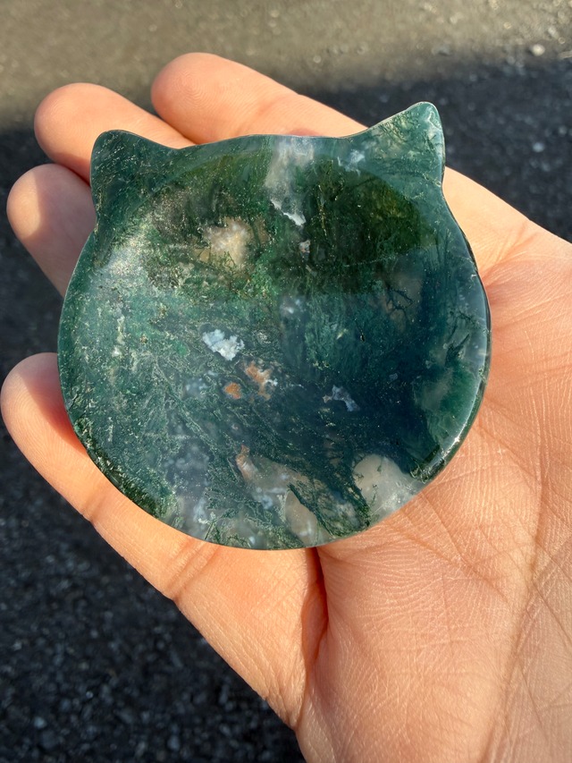 猫ちゃんオブジェ モスアゲート