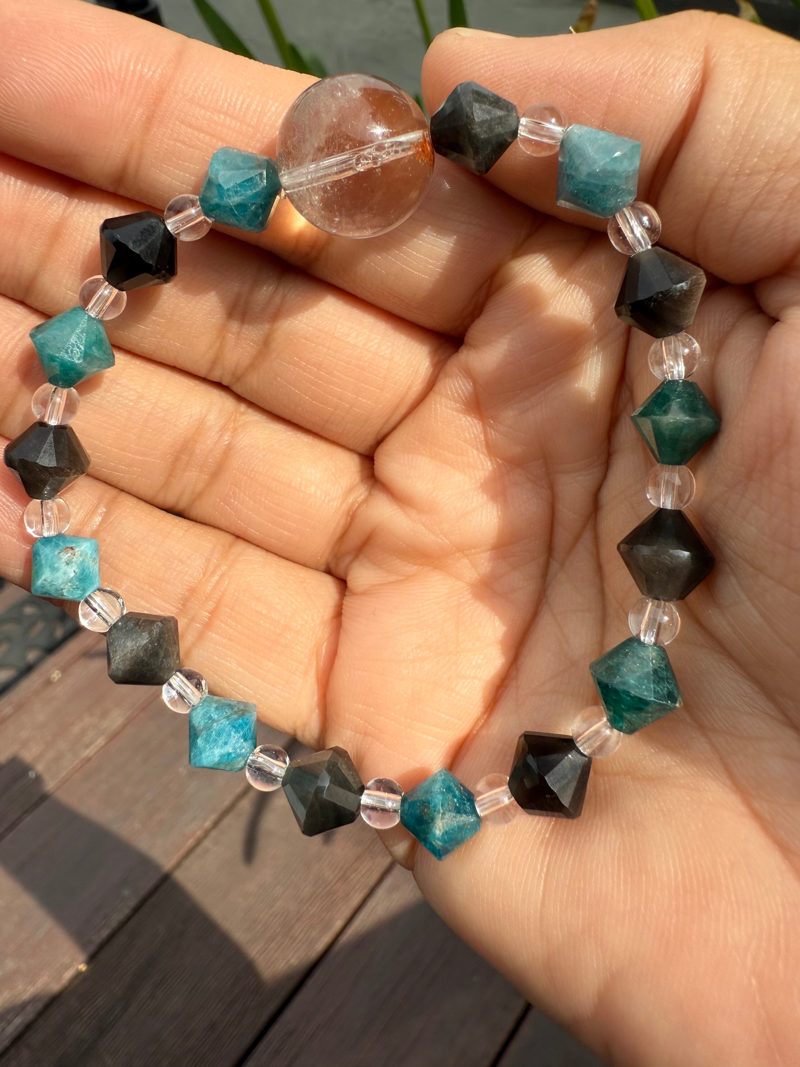 自然の恵みを感じる「ガーデンクォーツ ゴールデンオプシディアン アパタイト 水晶」。