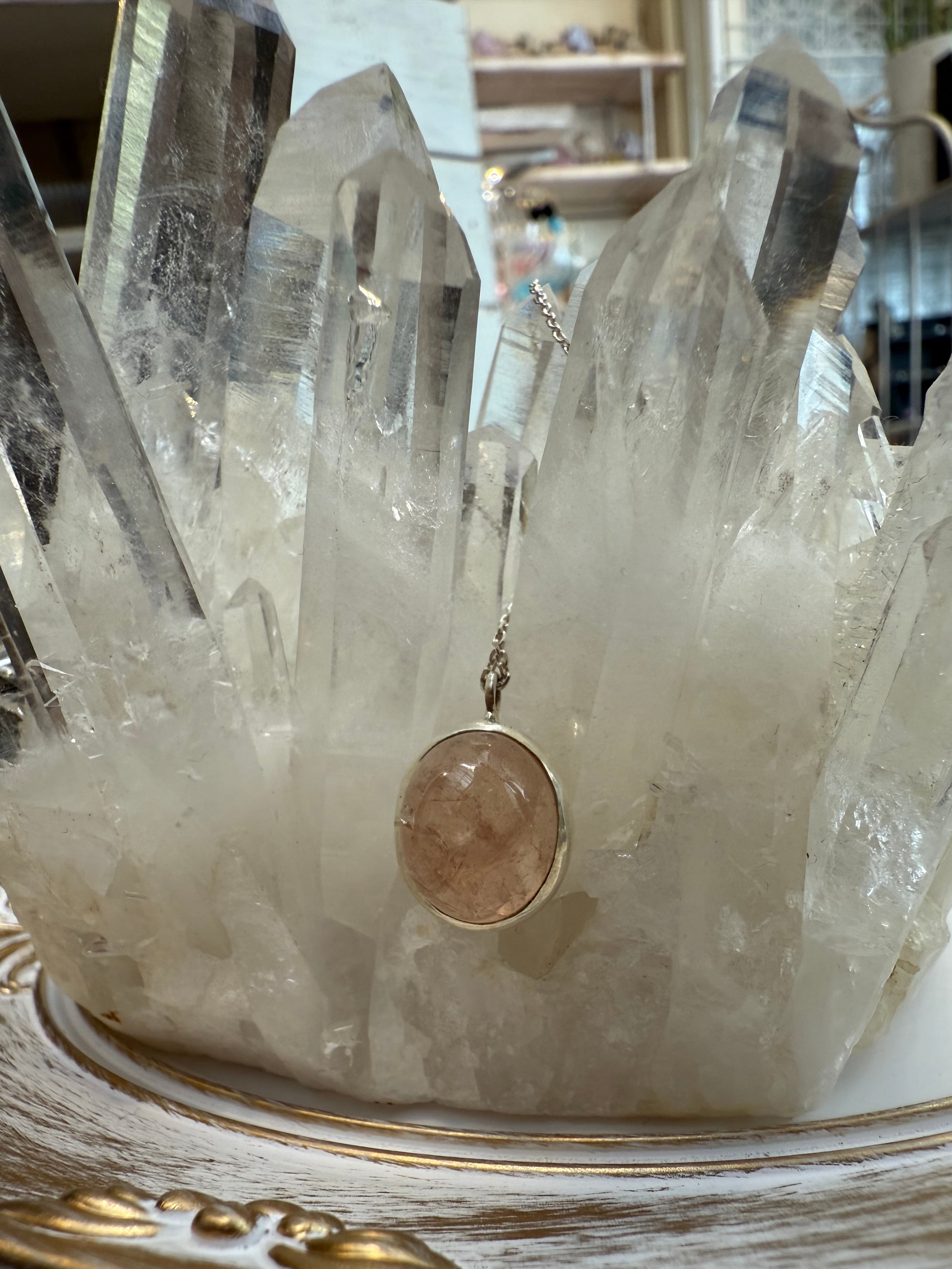 モルガナイトは、その柔らかなピンク色が特徴で、身に着ける人に温かみを与えます。このペンダントは、感情の安定をもたらし、内なる愛を引き出すサポートをしてくれるでしょう。着用することで、日常生活において心のつながりを感じ、より豊かな人間関係を築く手助けをしてくれるはずです。
