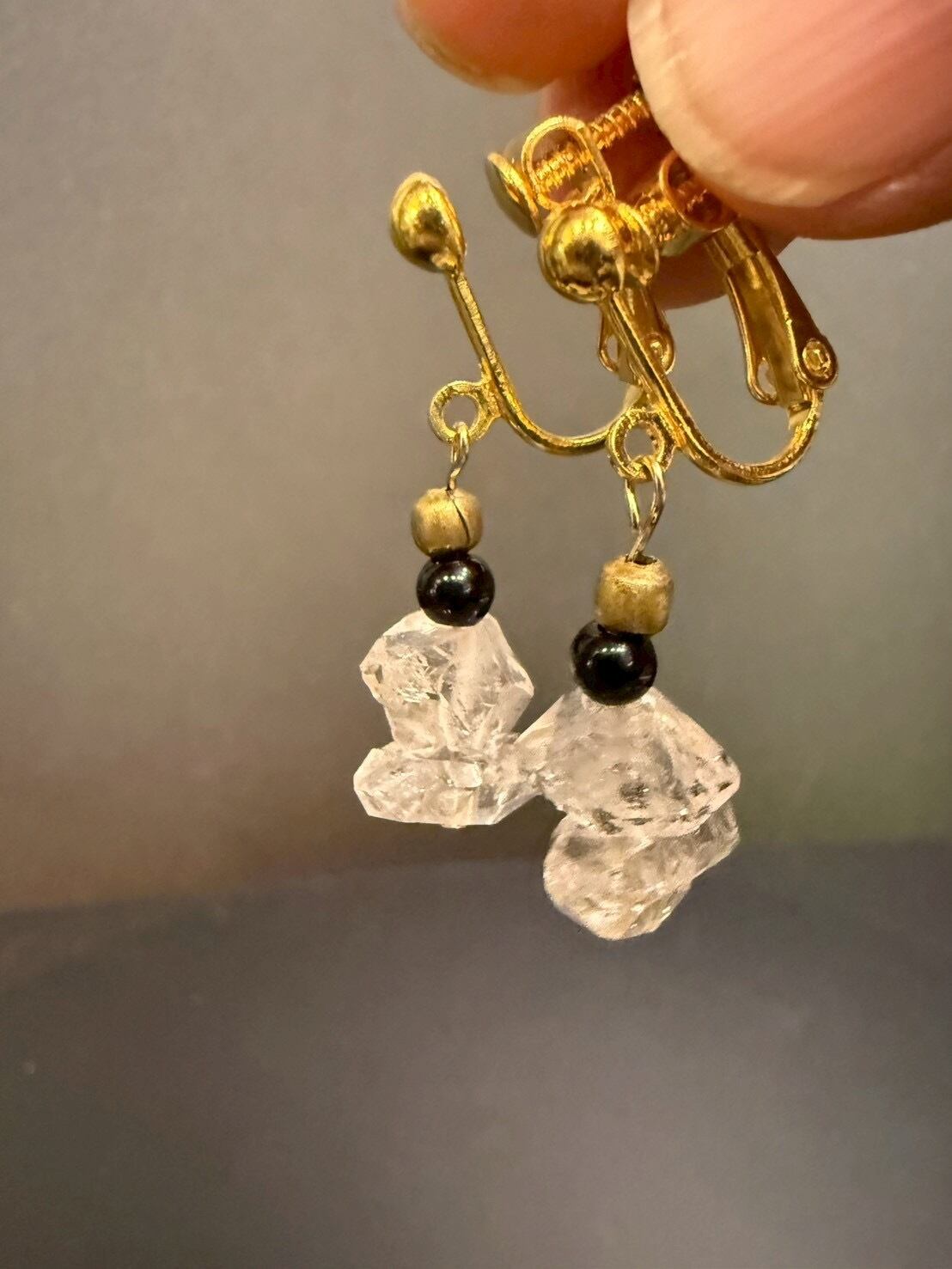 両剣水晶とオニキスを組み合わせた美しいイヤリングです。