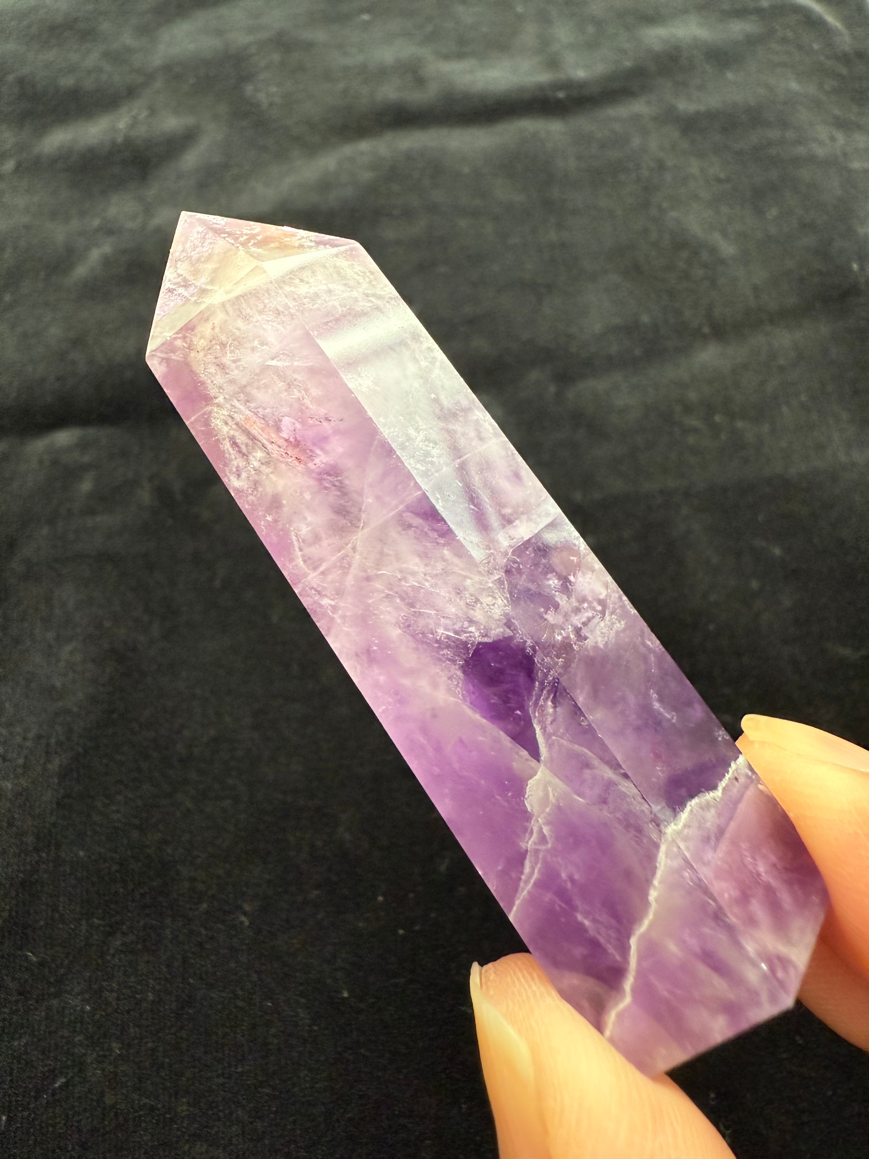 アメジスト ポイントは自然な形を活かしつつも、滑らかな表面を持っているため、手に取りやすいのが魅力です。美しい結晶構造は、どの角度から見ても異なる表情を見せ、インテリアとしても個性を引き立てる存在になることでしょう。