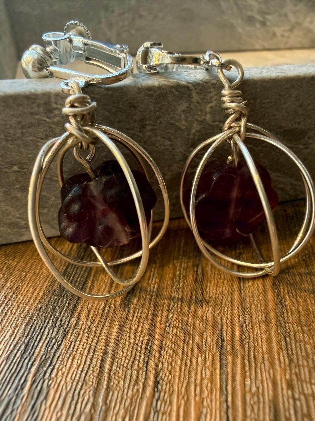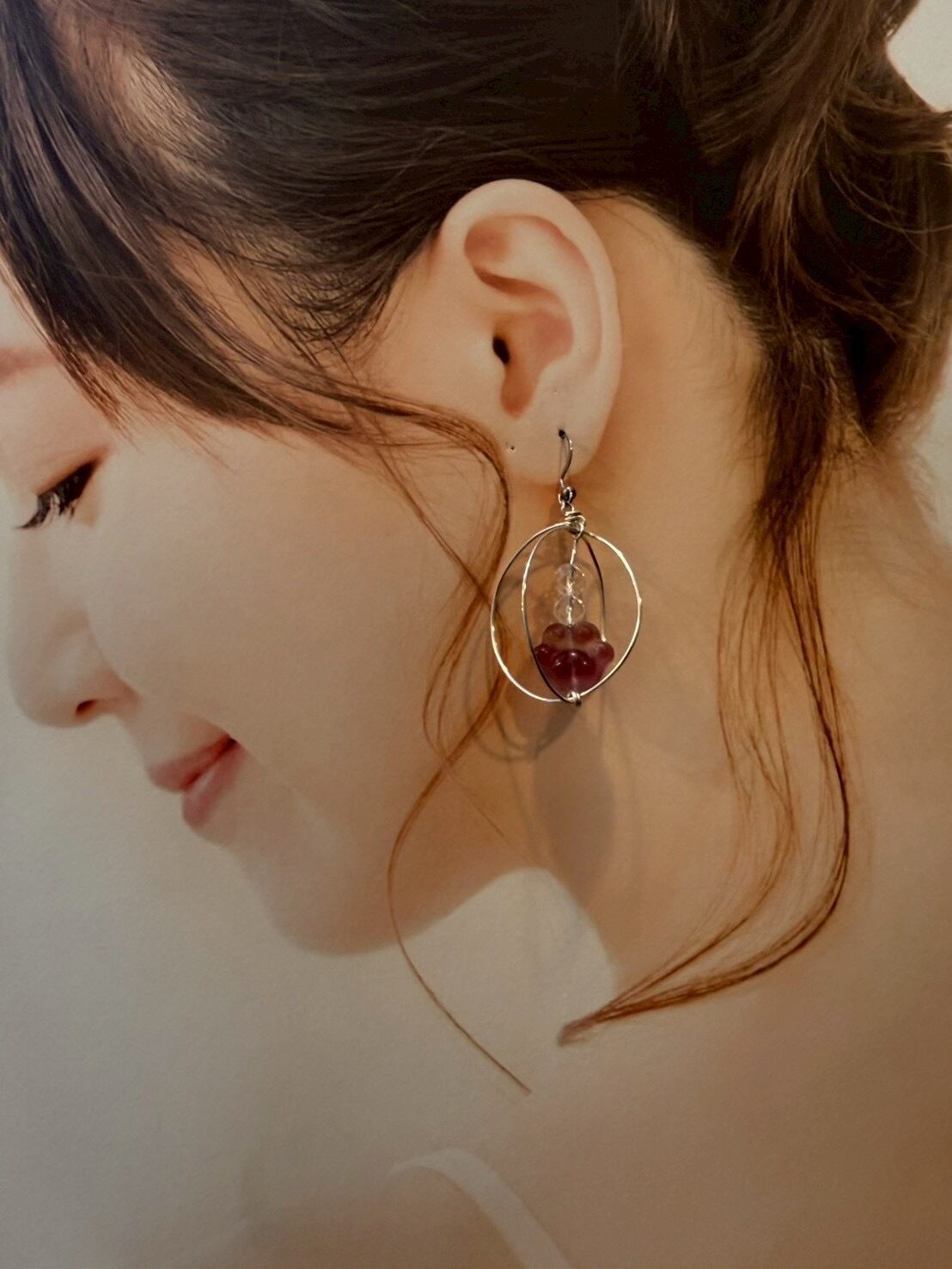 小さめ球で包んだ、肉球モチーフのフローライトイヤリング