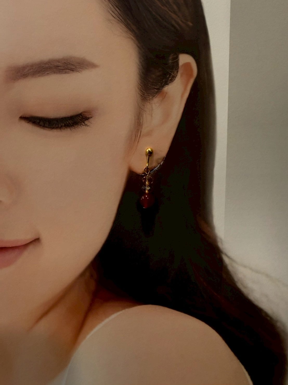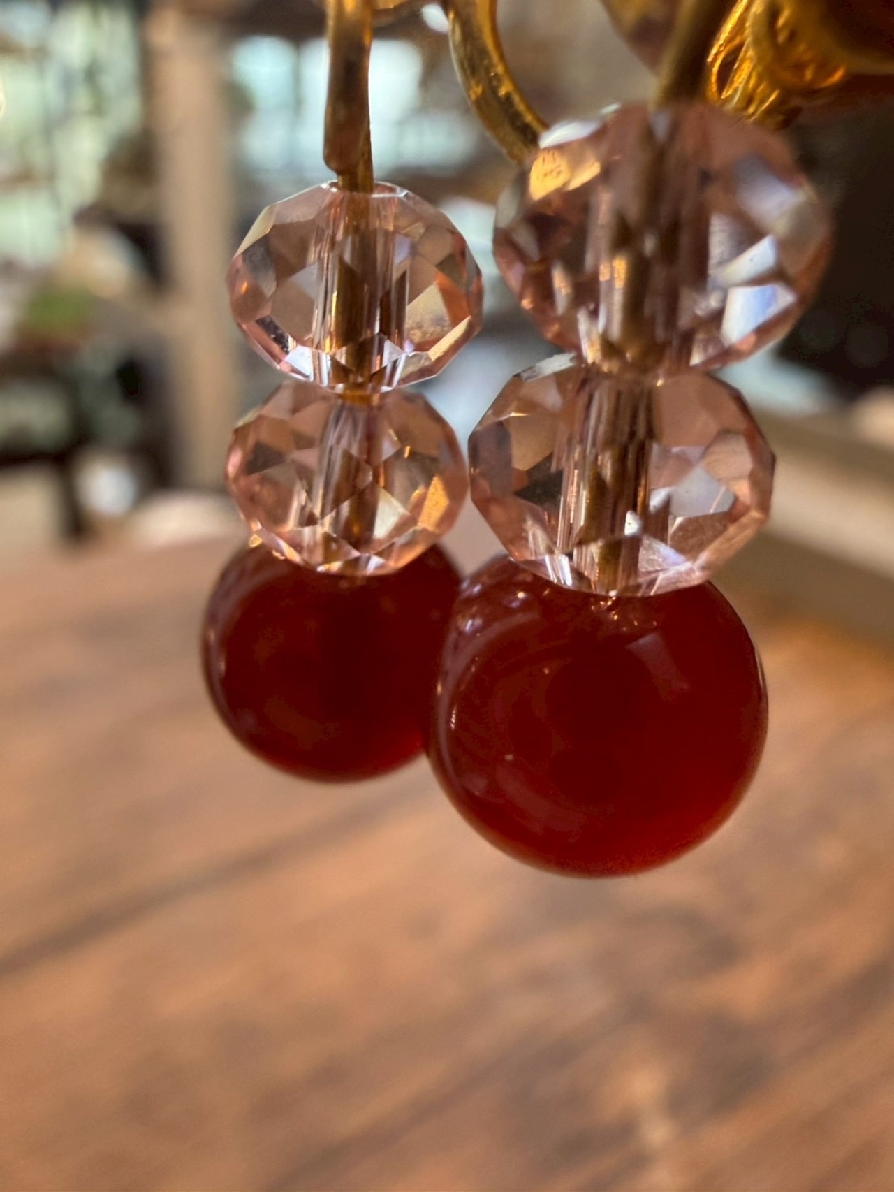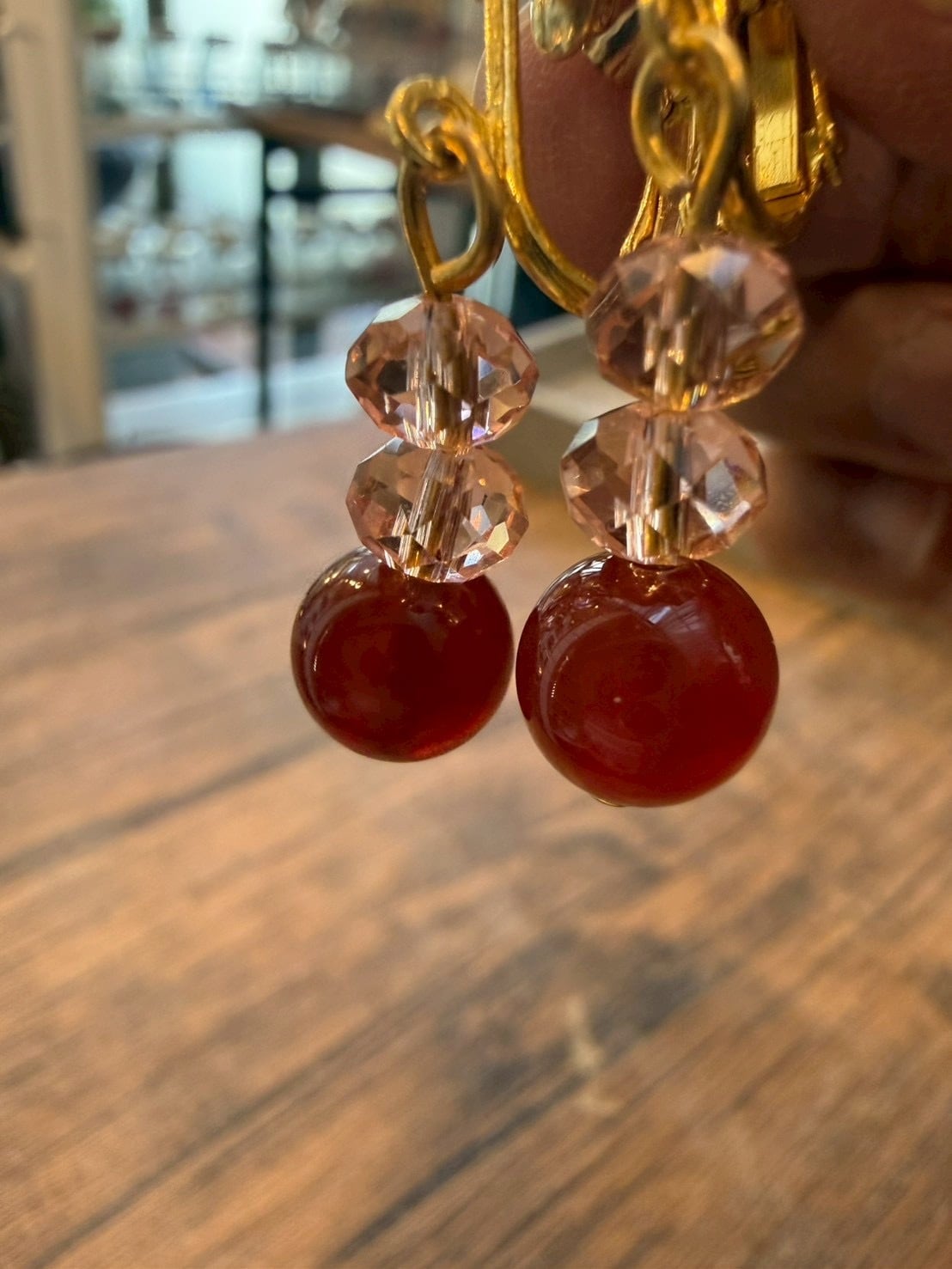 前向きな輝き。カーネリアン、染め水晶のイヤリング