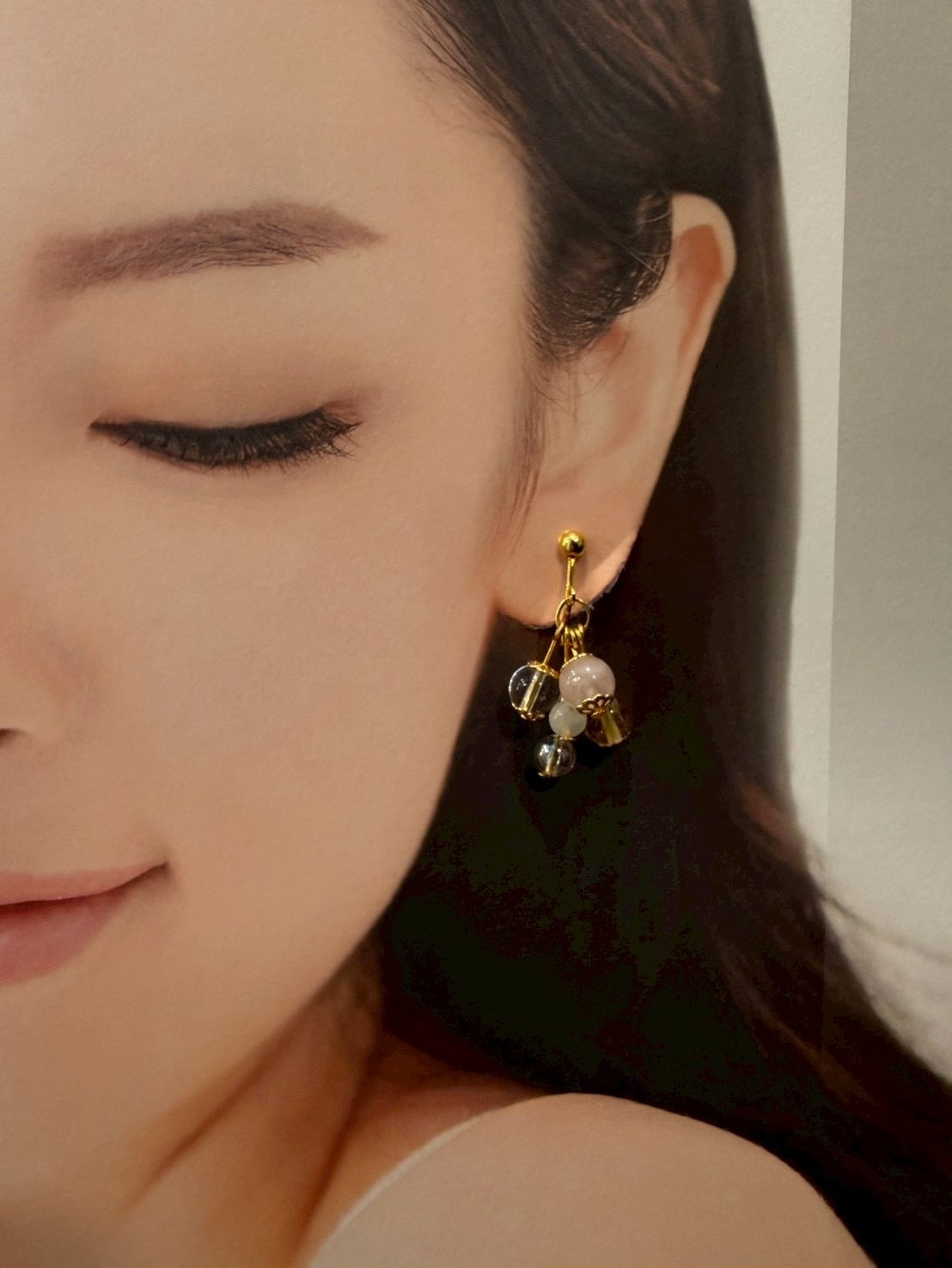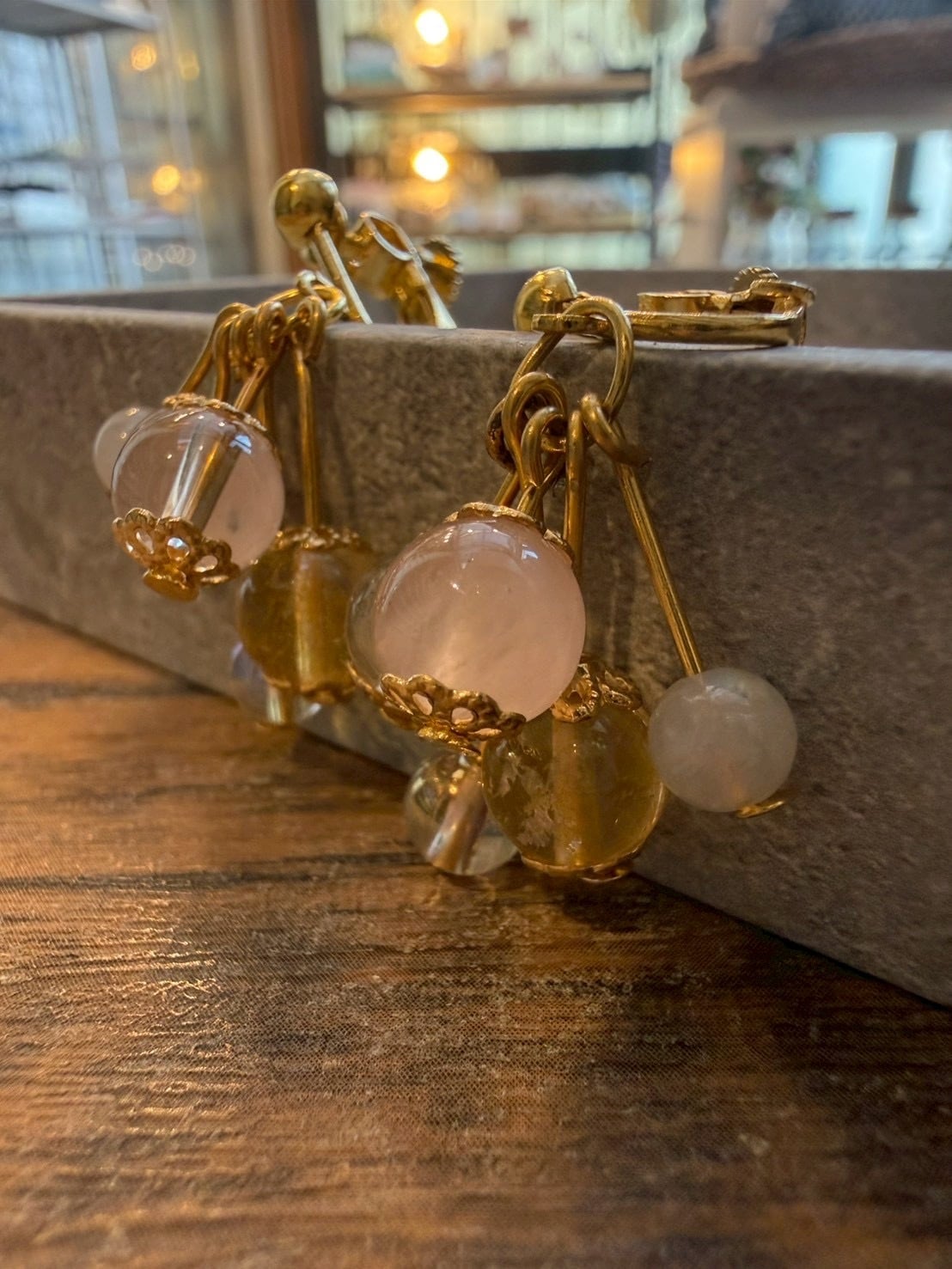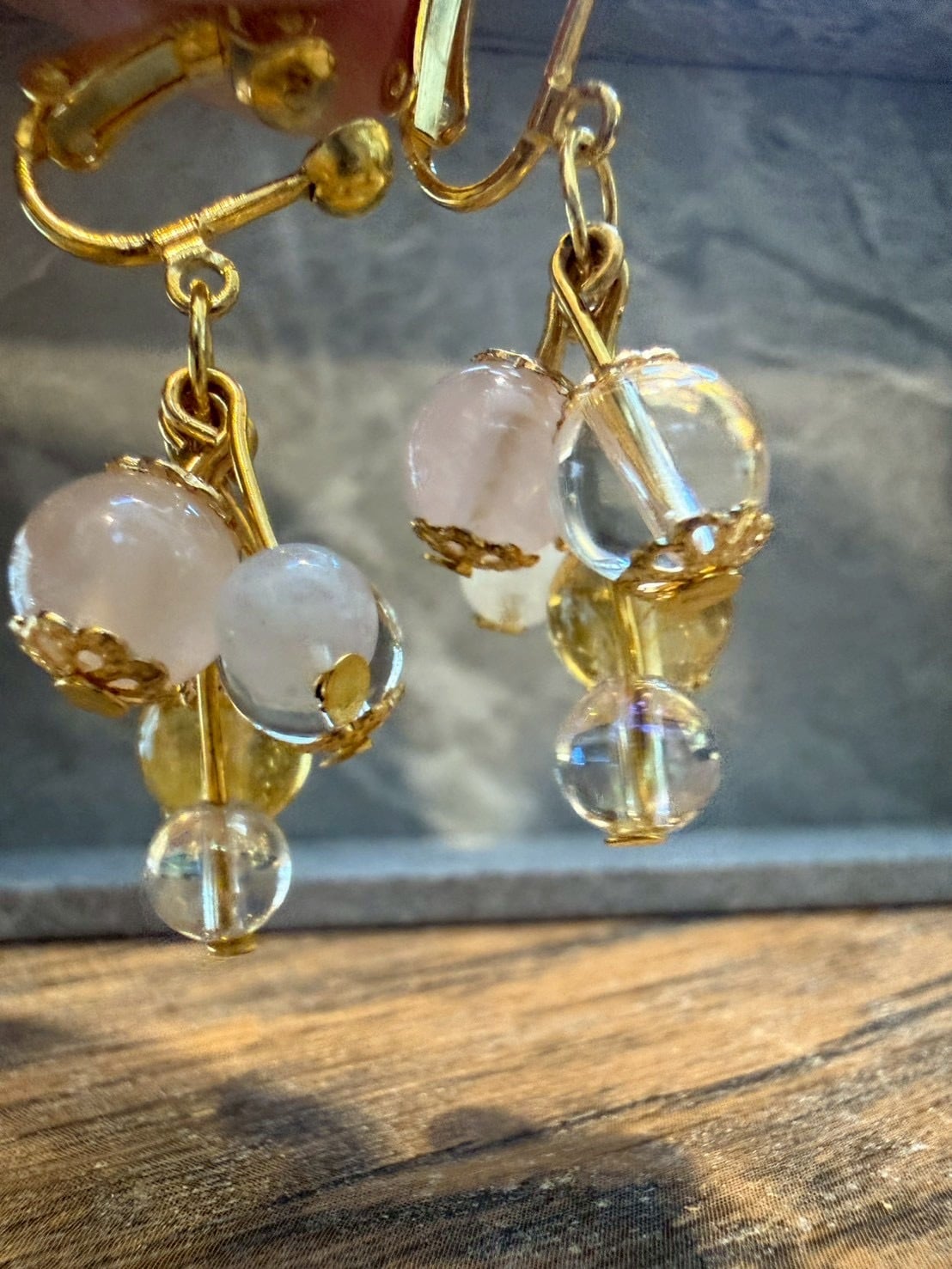 愛と幸運を!シトリン、ローズクォーツ、ムーンストーンのイヤリング