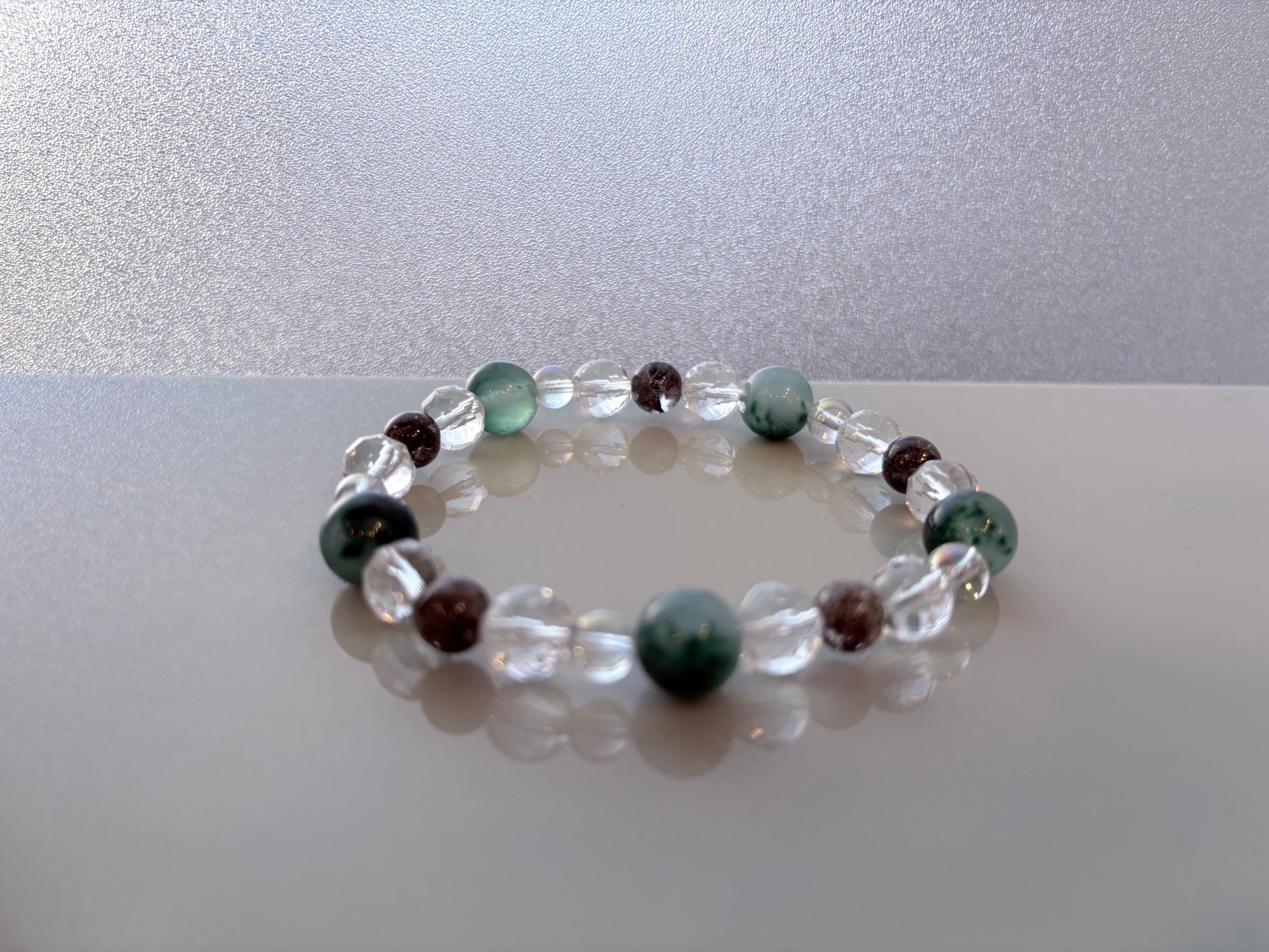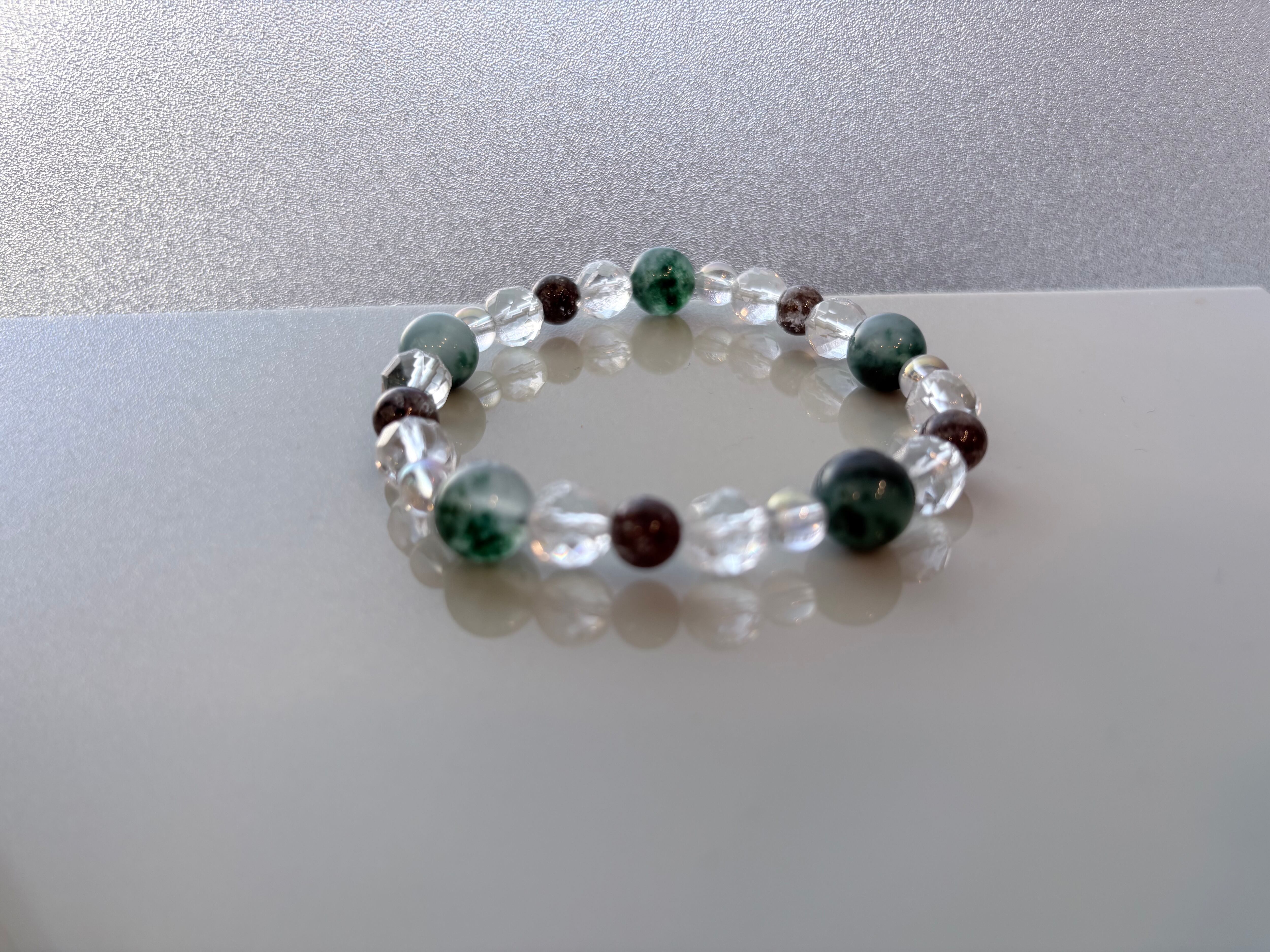 • 【心身の調和】:グリーン系の石が持つリラックス効果と、水晶の浄化力が、日々のストレスから持ち主を優しく守ります。