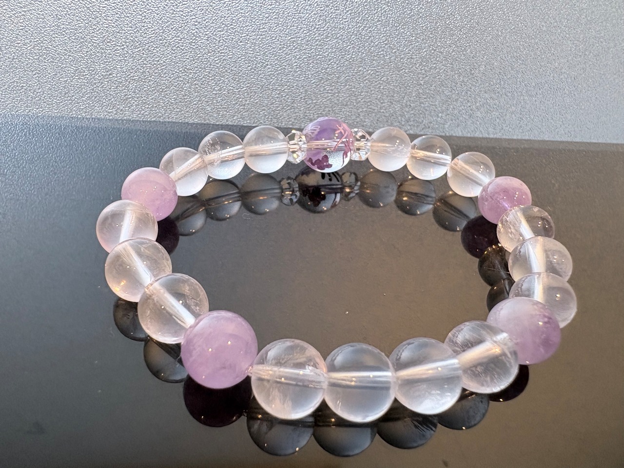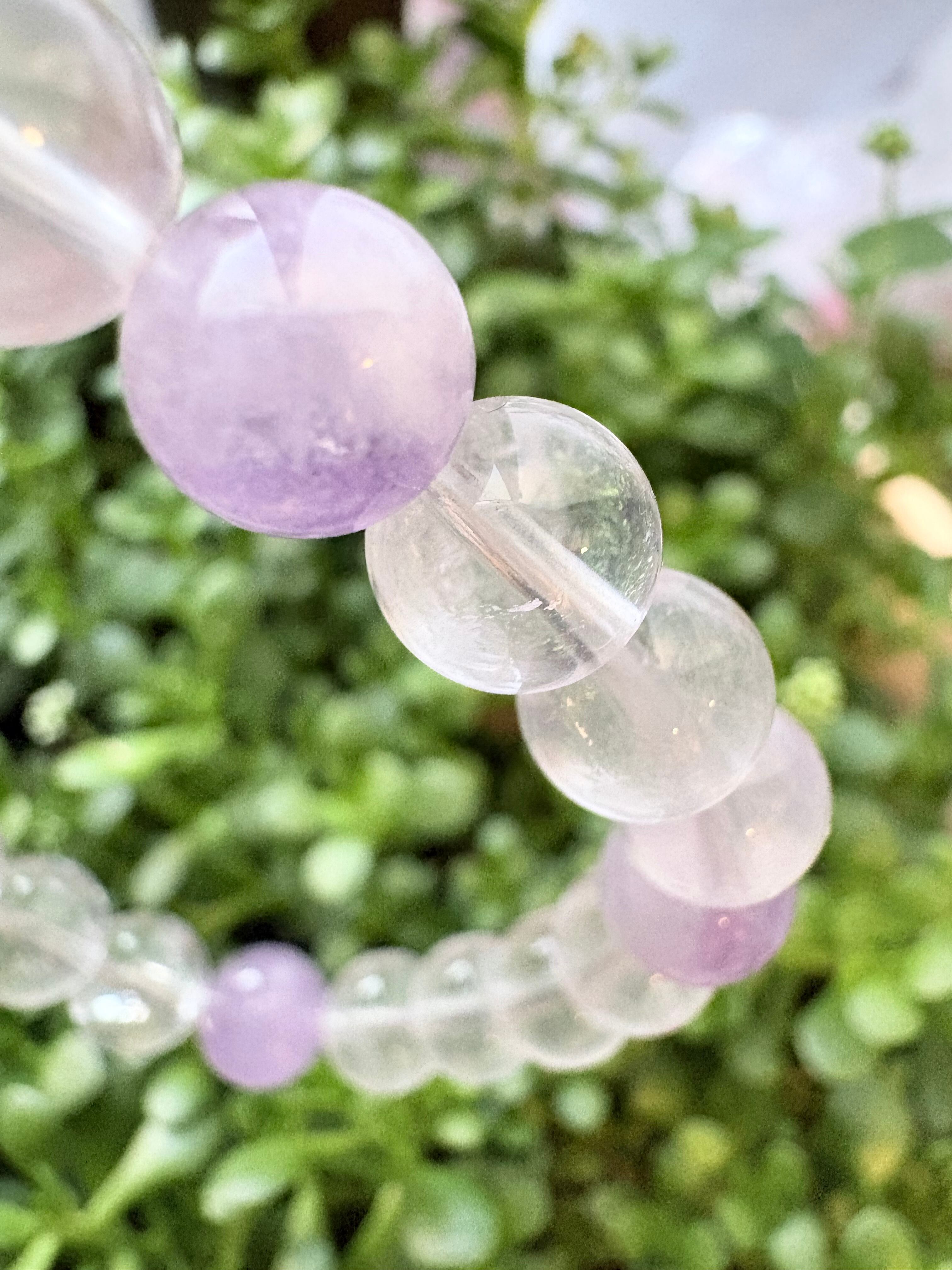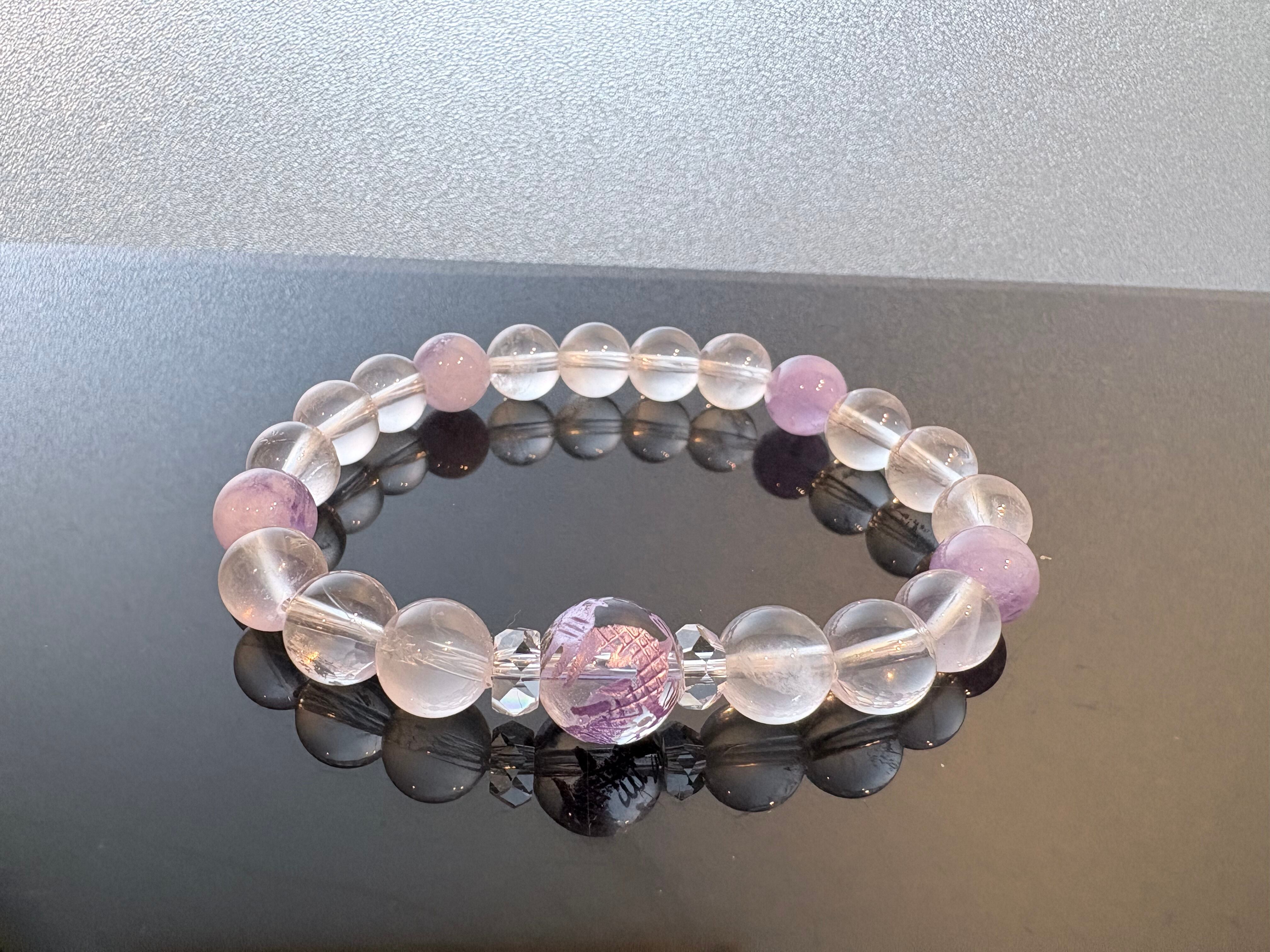 こちらの組み合わせは、最強の守護神である「龍」のエネルギーを、ラベンダーアメジストとK2ムーンストーンの「高い精神性」で包み込んだ、非常に高貴で守護力の強い構成です。