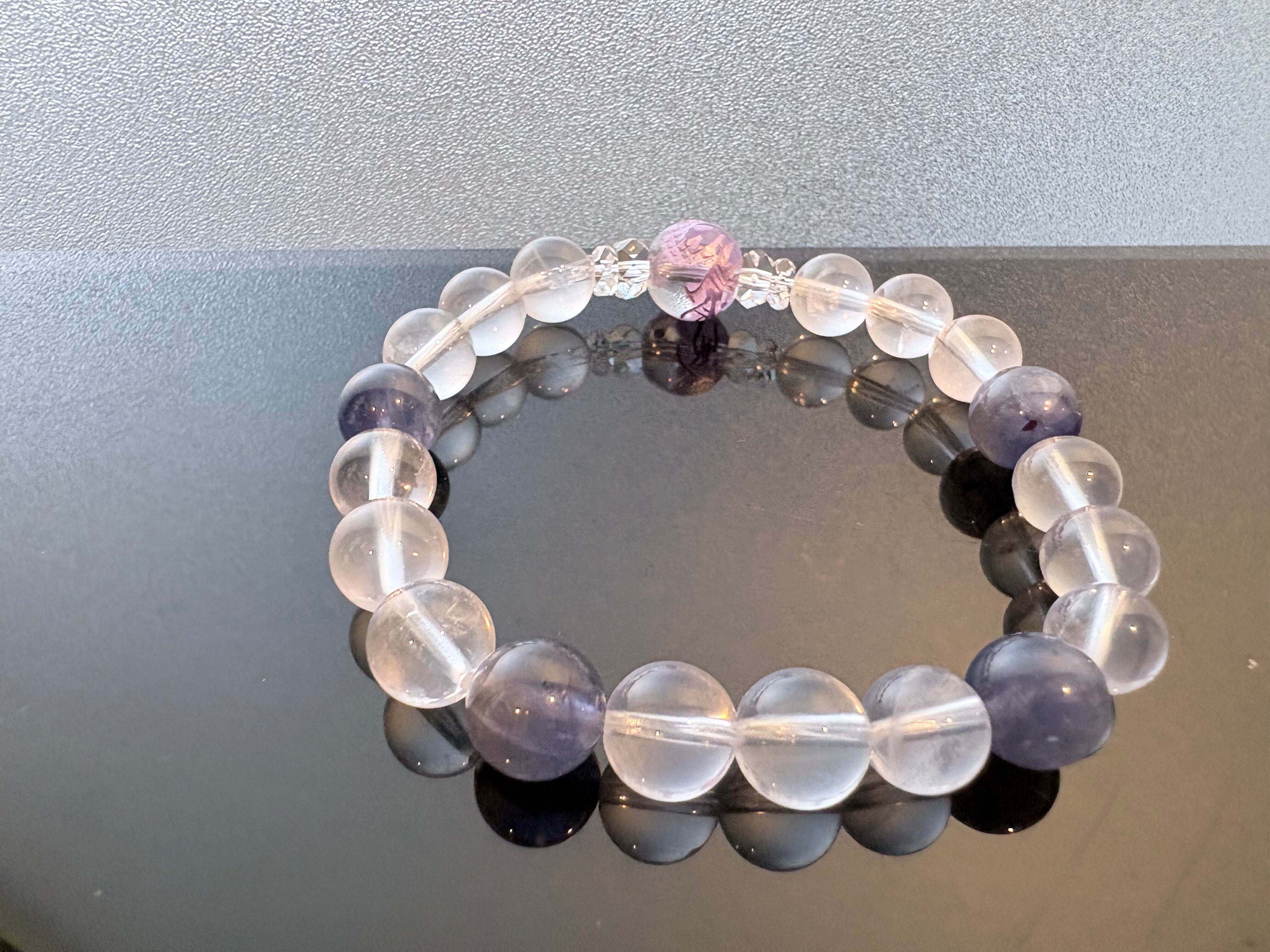 • 他の石たちの個性を繋ぎ合わせ、ブレスレット全体のエネルギー密度を高めます。カット面が光を反射し、持ち主の思考をクリアに保ちます。