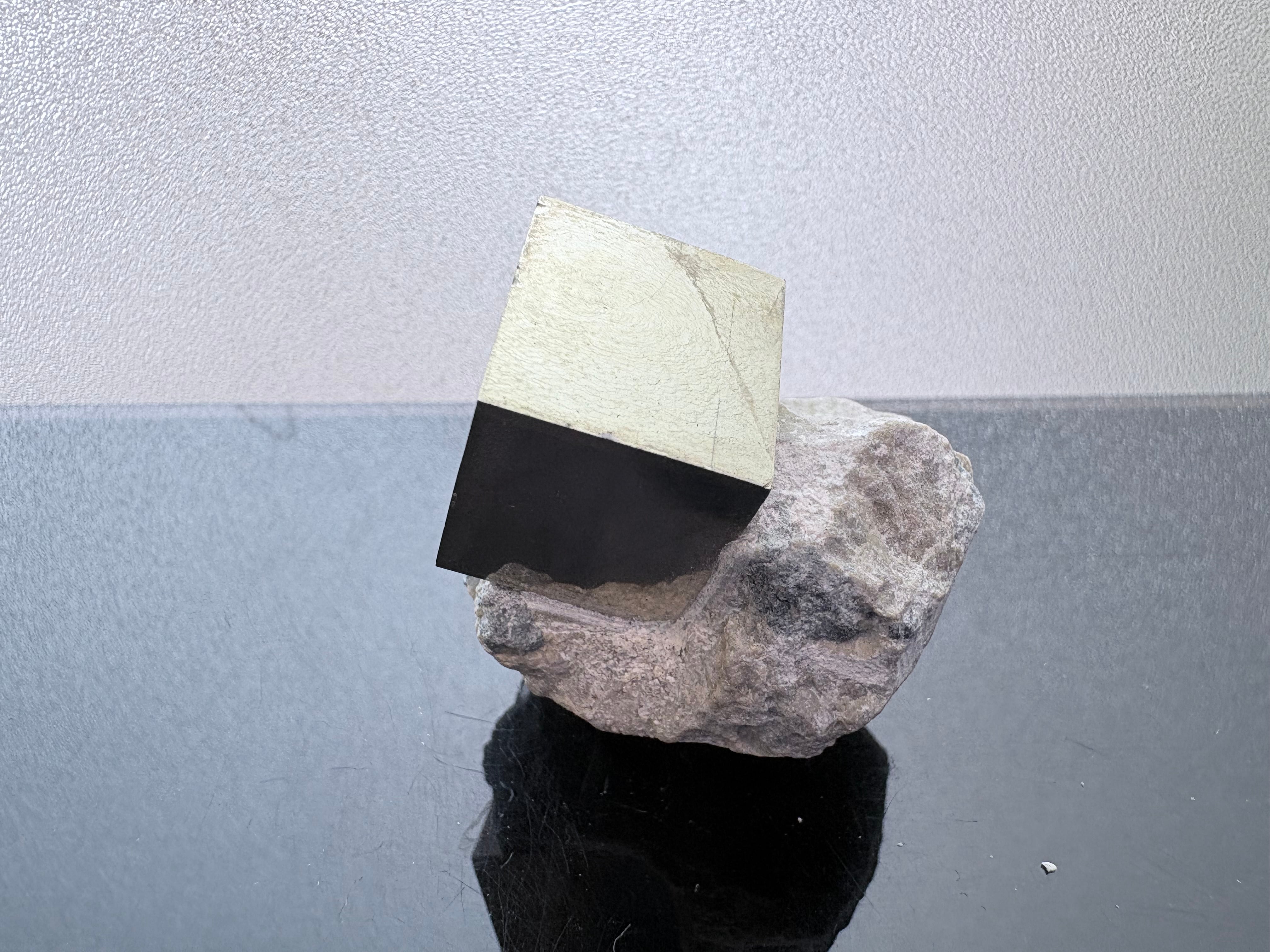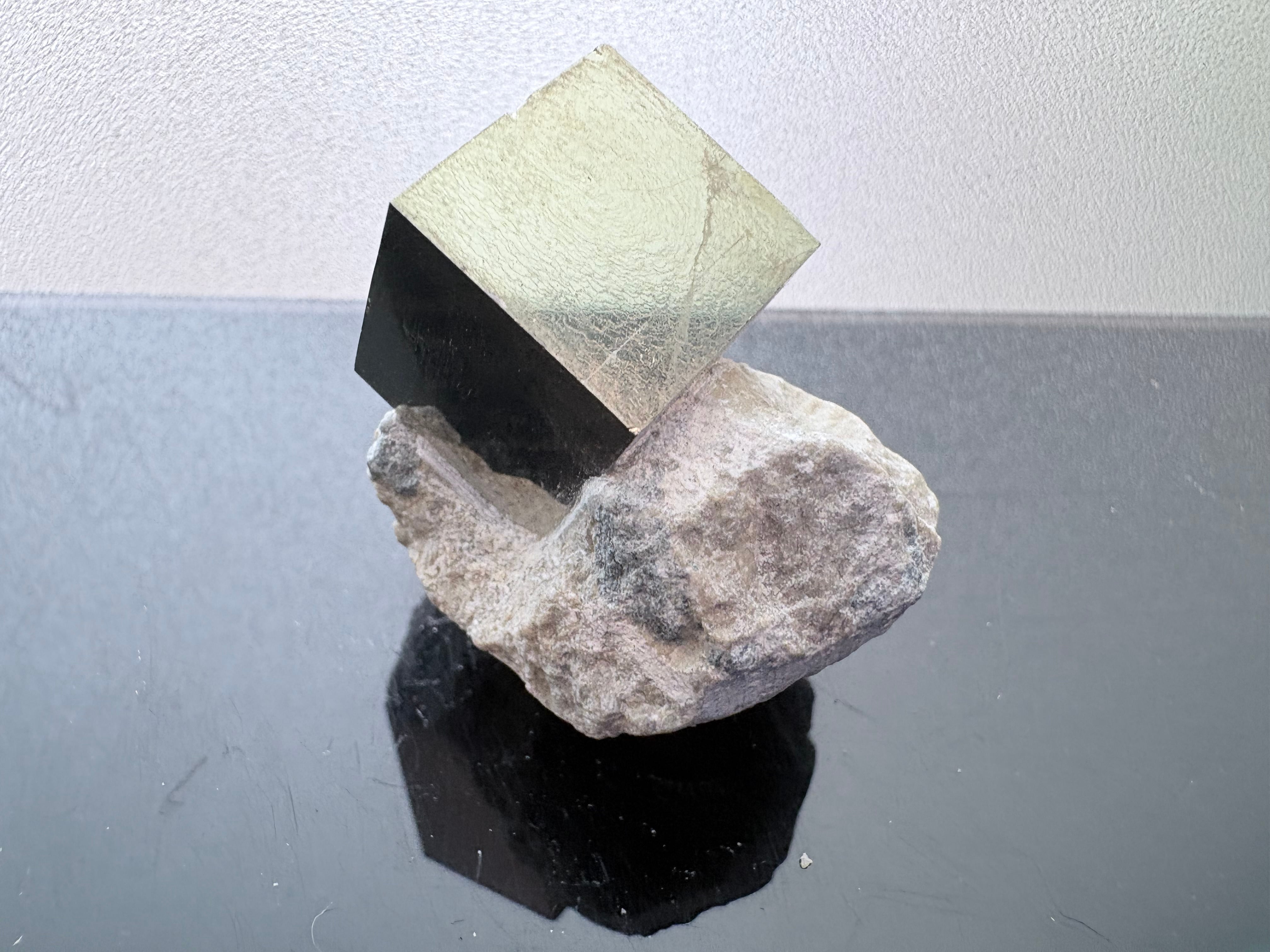 自然界が織りなす「黄金の立方体」。母岩付き。