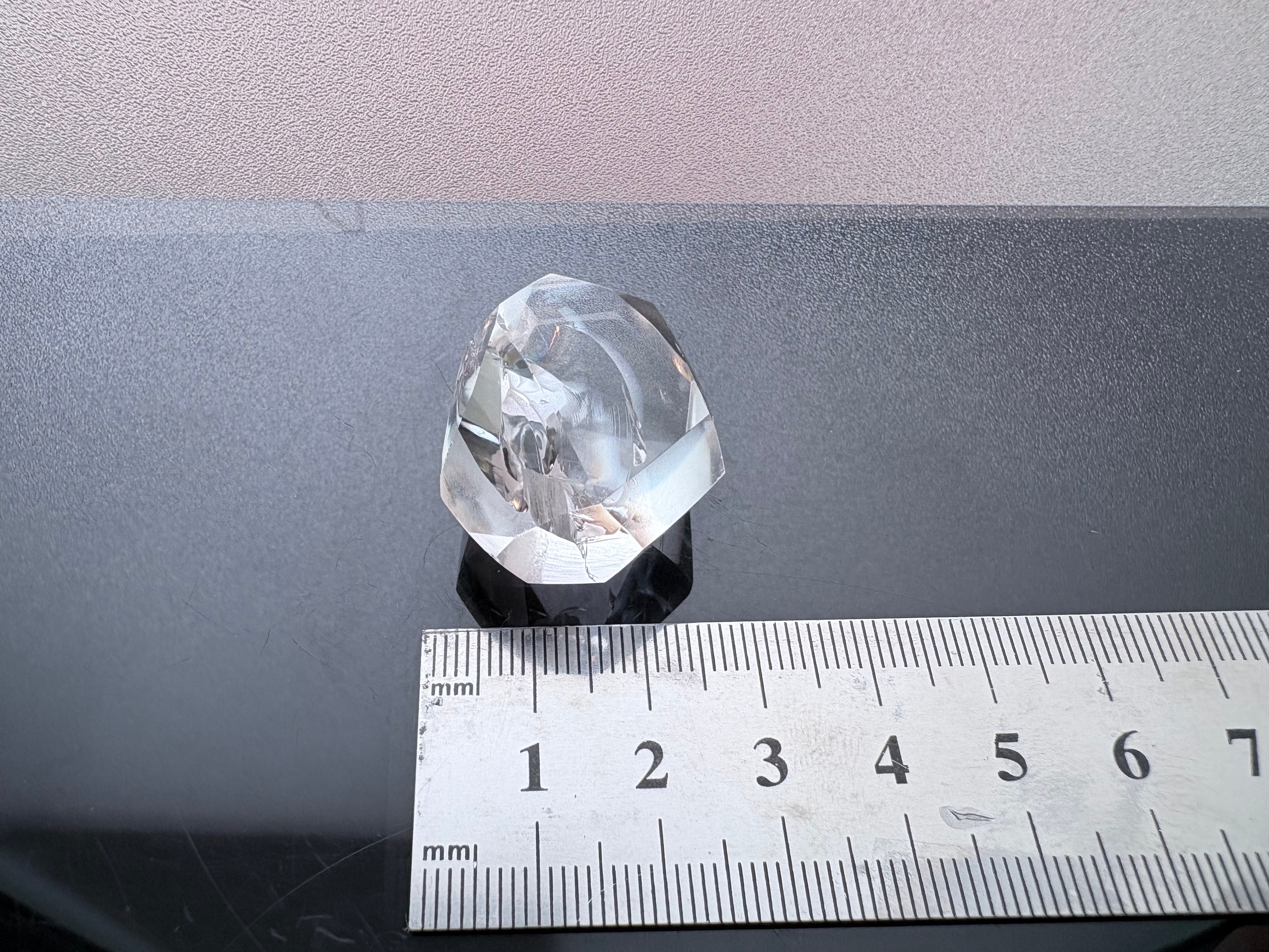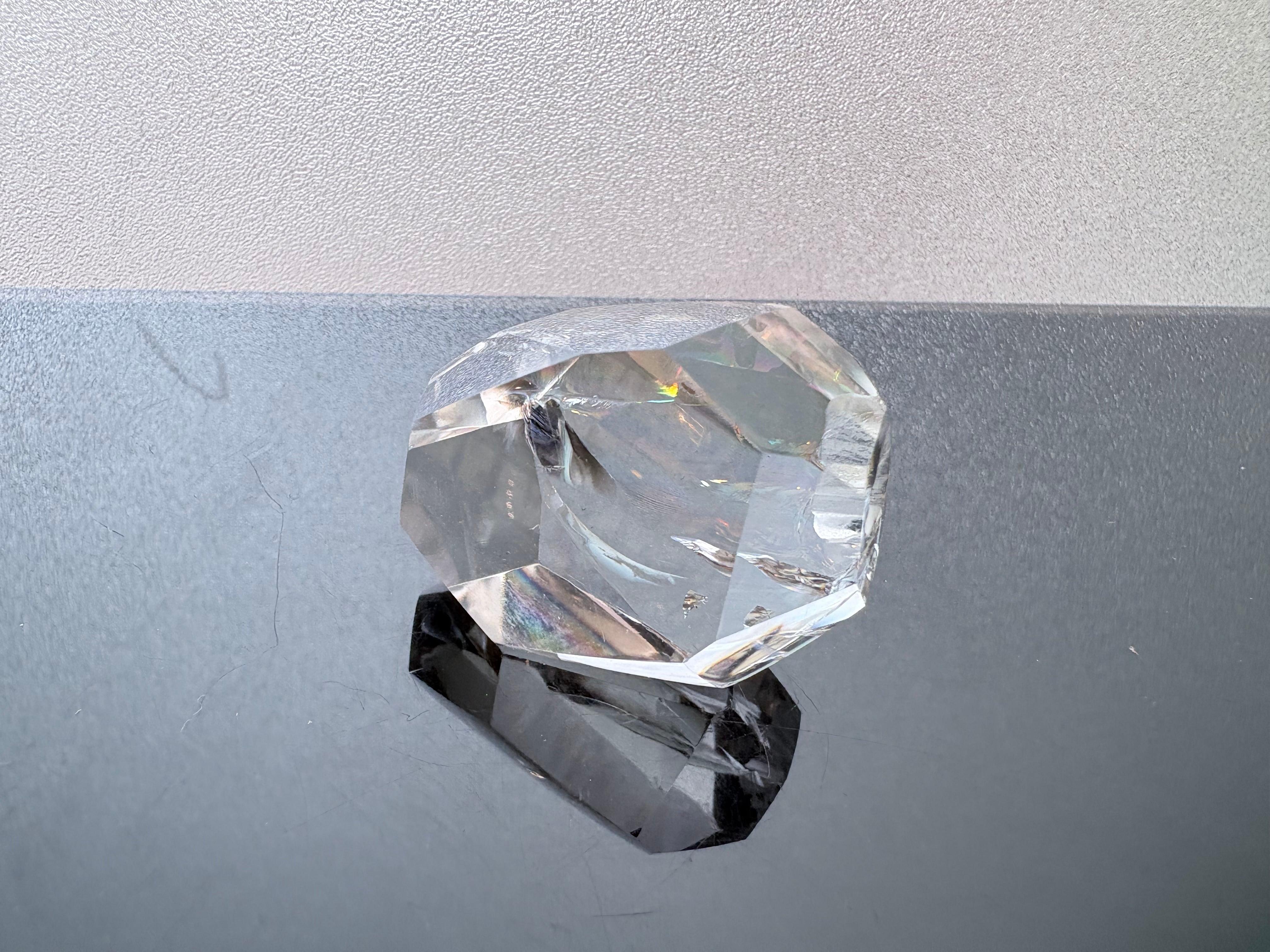この石に見られる美しい虹は、水晶の結晶内部に入った亀裂や歪みに光が当たり、プリズムのように反射することで生まれます。