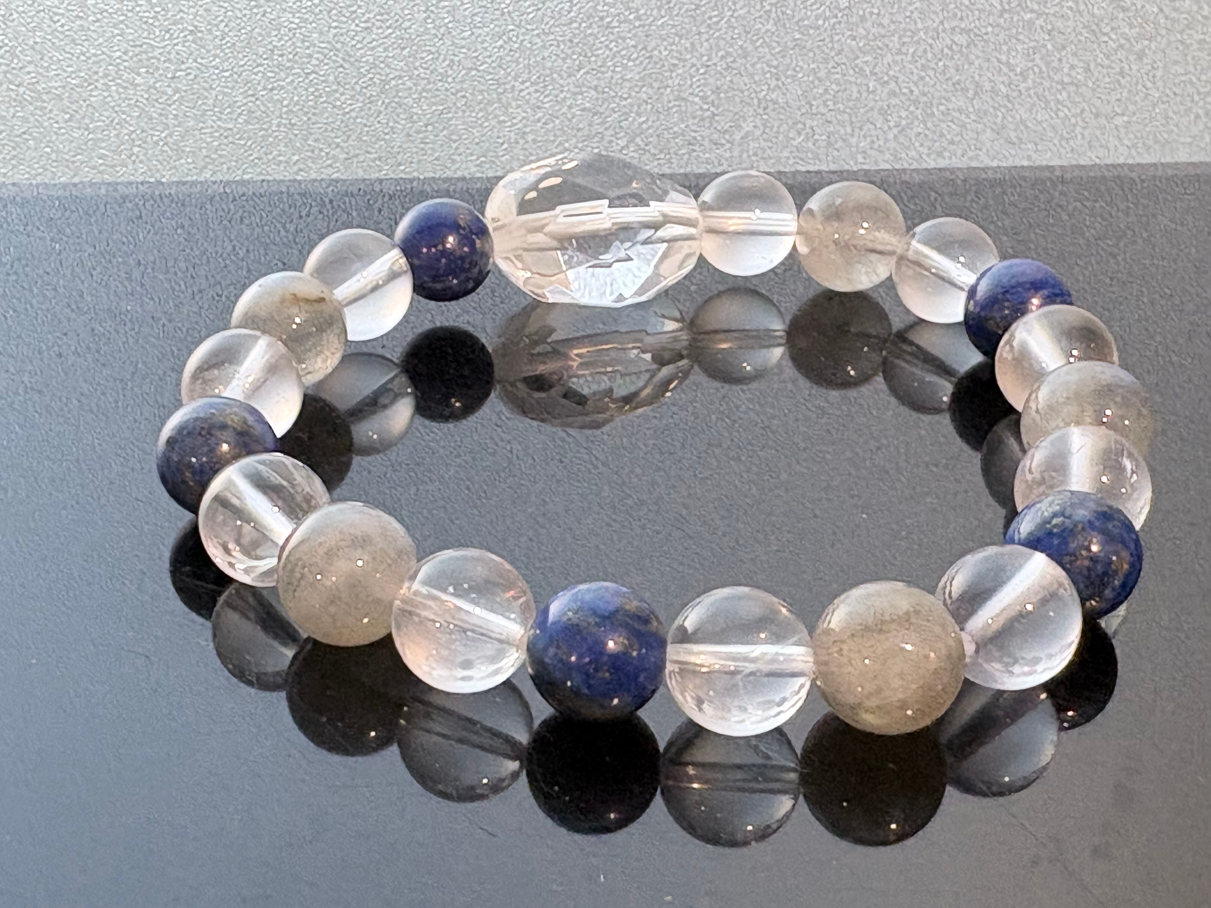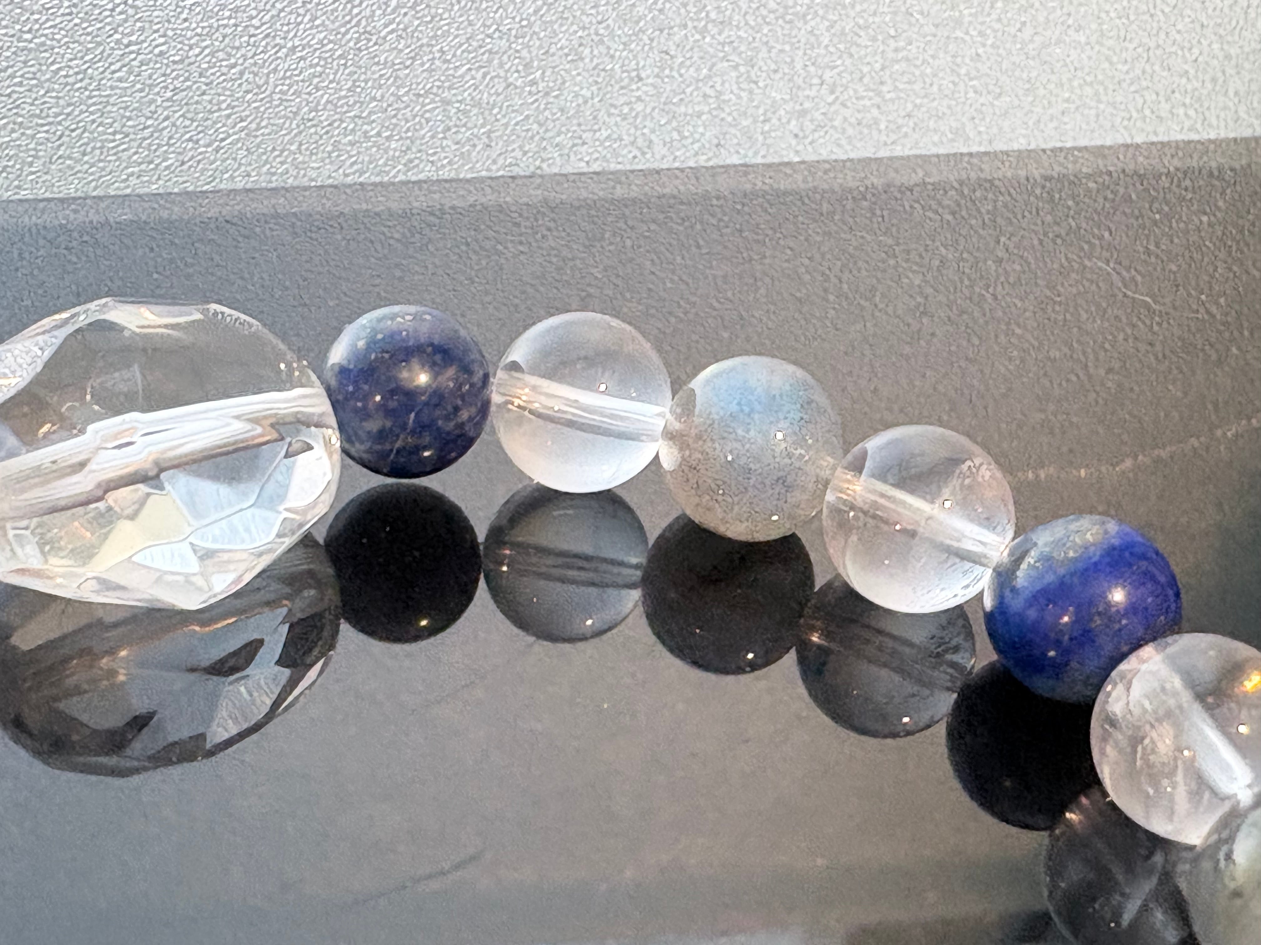 ラピスラズリとラブラドライトは共に個性が強い石ですが、K2ムーンストーンの包容力と水晶の浄化力が加わることで、不思議と持ち主に馴染む「高次元のパートナー」のような存在になってくれることでしょう。