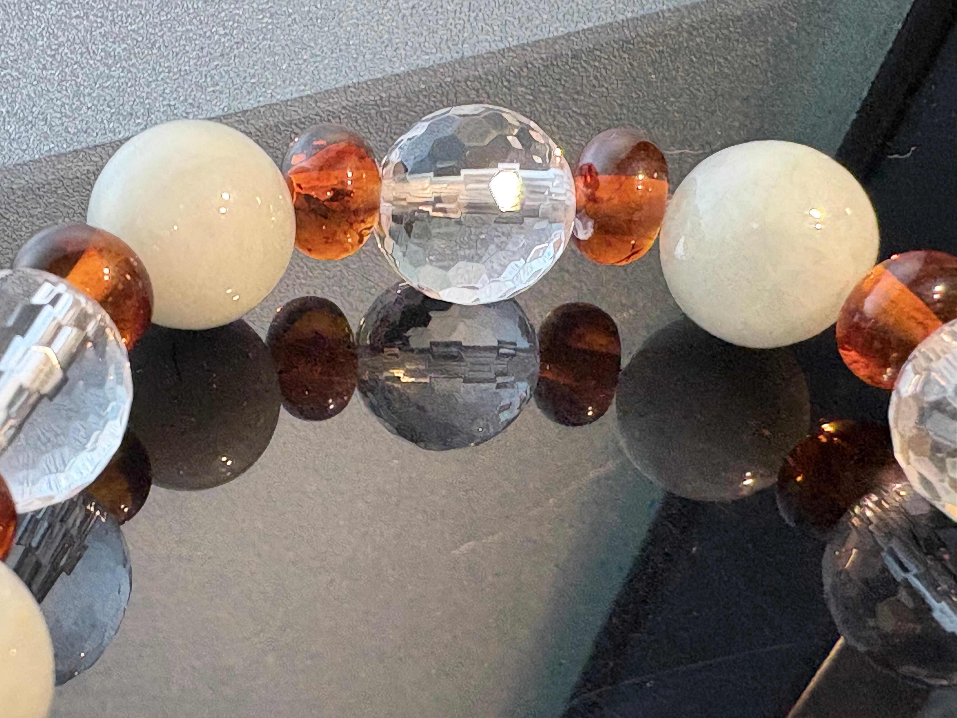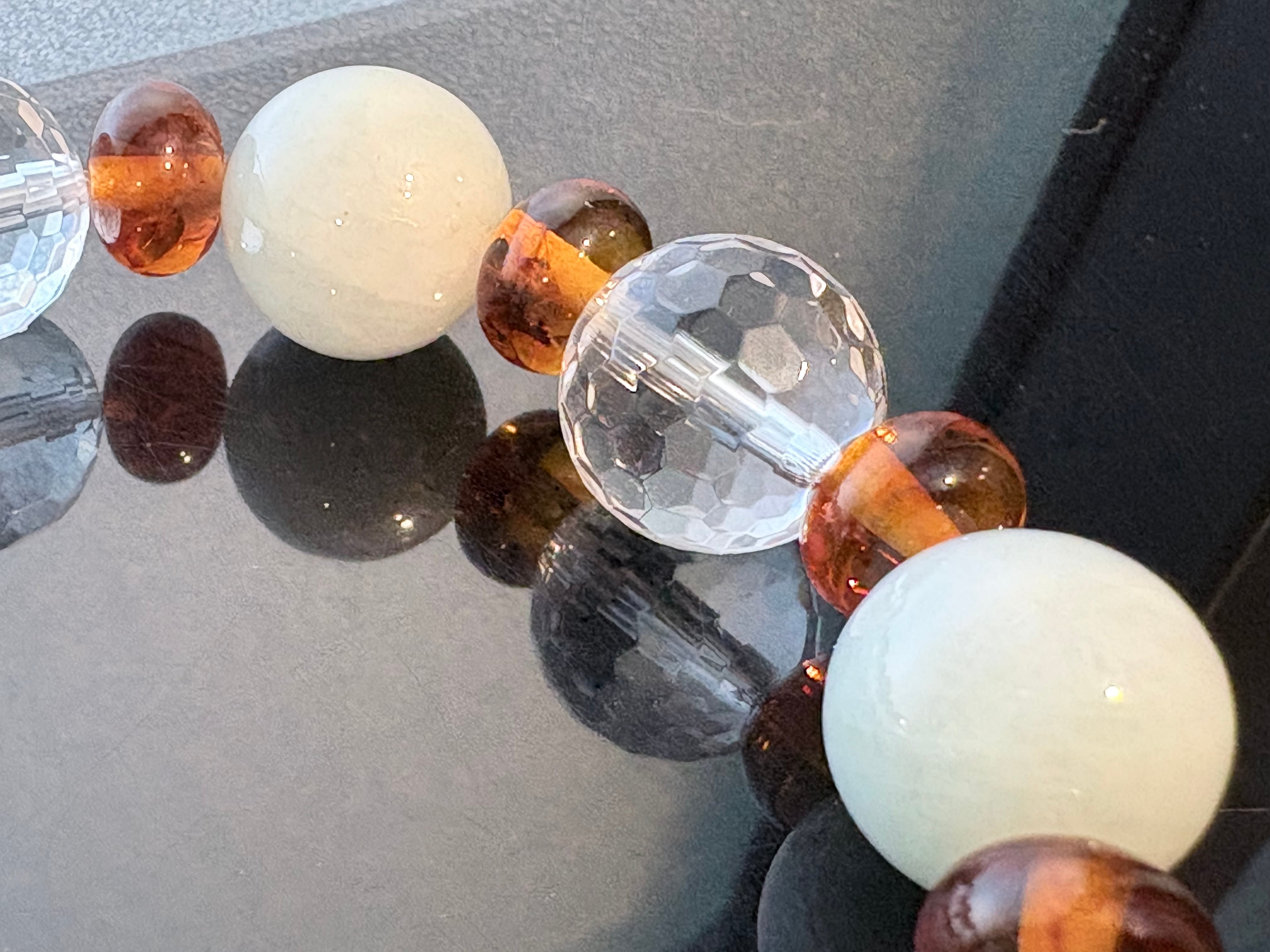 アンバーは「財運」を引き寄せ、ヒスイは「繁栄」を持続させると言われています。この2つの組み合わせは、単なる一時的な幸運ではなく、息長く続く安定した豊かさを構築する助けとなります。